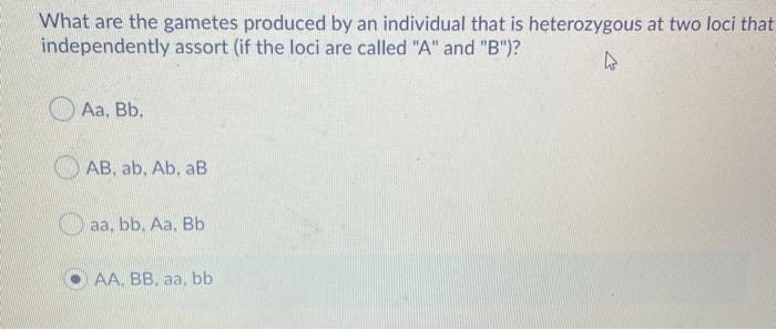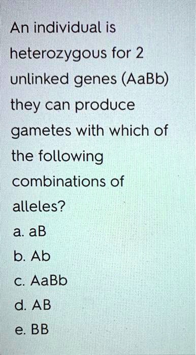 Solved An Individual Is Heterozygous For 2 Unlinked Genes Aabb They Can Produce Gametes With Which Of The Following Combinations Of Alleles A Ab B Ab C Aabb D Ab E Bb