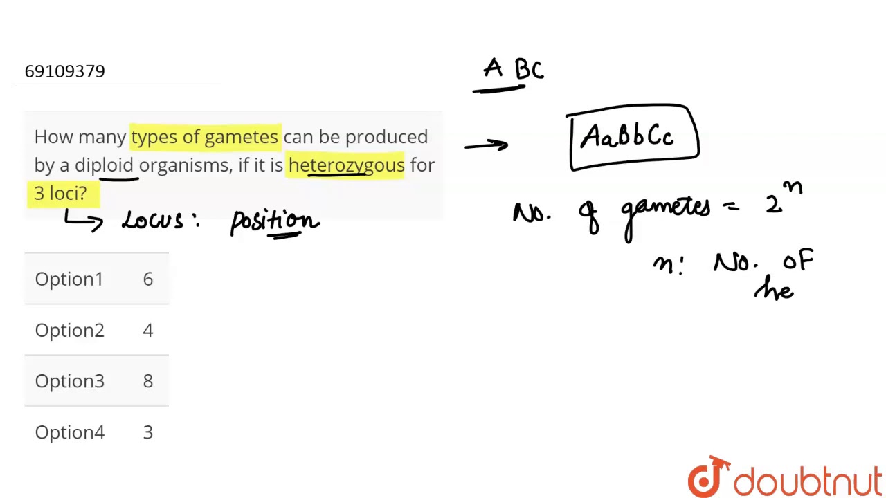 How Many Types Of Gametes Can Be Produced By A Diploid Organisms If It Is Heterozygous For 3 Loci Youtube